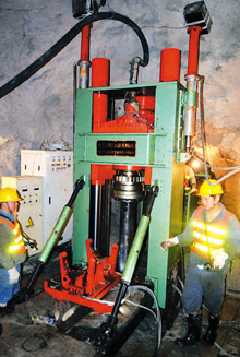 隨著中國(guó)黃金集團(tuán)公司首臺(tái)反井鉆機(jī)近日在湖北三鑫金銅股份有限公司-370米水平24線穿脈的天溜井聯(lián)道處開(kāi)鉆,中國(guó)黃金集團(tuán)公司結(jié)束了天井施工作業(yè)由人工開(kāi)鉆的歷史,實(shí)現(xiàn)了由反井鉆機(jī)一次成型天井作業(yè)施工。